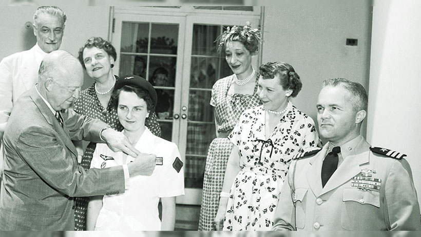 DÉCORÉE PAR EISENHOWER Geneviève de Galard reçue et honorée par le Président des États-Unis Précédent | Suivant